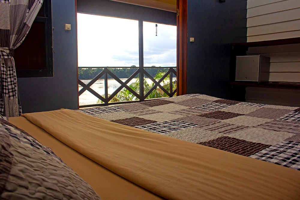 Gelegen in onze hoofdlodge, optimale luxe op 60m2 ruimte inclusief een privébalkon met uitzicht op de rivier.