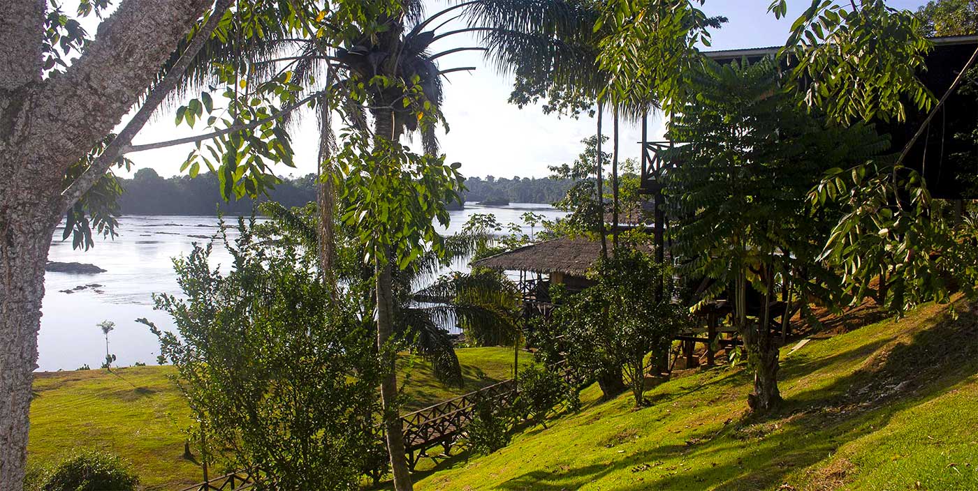 Gelegen aan de serene Corantijn rivier, vlakbij het inheemse dorp Amatopo, bieden we prachtige accommodaties met twee luxe suites in de hoofdlodge, vier tweepersoonskamers op de heuveltop en twee privé cottages aan de rivier. Geniet van ons prachtige panoramische restaurant en ontspan op de rotsen en in de rivier.